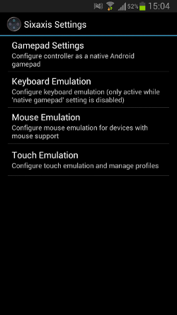Lancez maintenant Sixaxis Controller et allez dans les préférences (accessible via le bouton "Options" de votre smartphone):