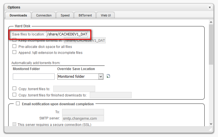 Je vous conseille également de vérifier où vous souhaitez que vos téléchargements soient déposés une fois complétés. Dans mon cas, dans /share/CACHEDEV1_DATA/Download/, qui est le dossier partagé Download par défaut du Qnap.