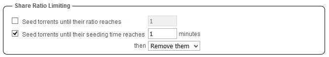 On peut aussi utiliser cette option pour que les torrents soient supprimés automatiquement, une minute après qu'ils sont terminés !